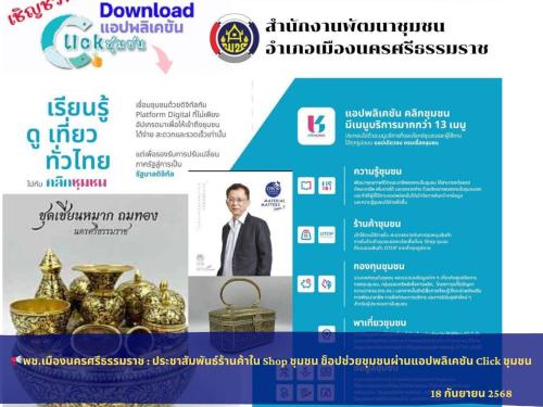 พช.เมืองนครศรีธรรมราช : ประชาสัมพันธ์ร้านค้าใน Shop ชุมชน ช็อปช่วยชุมชนผ่านแอปพลิเคชัน Click ชุมชน