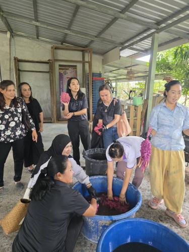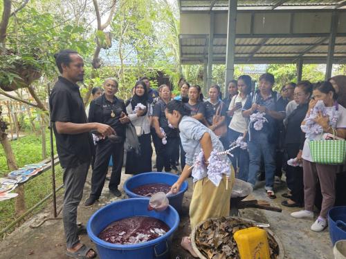 การดำเนินกิจกรรมในครั้งนี้ มุ่งเน้นให้ผู้เข้าร่วมได้เรียนรู้ตั้งแต่กระบวนการคัดเลือกวัสดุธรรมชาติ การสกัดสี เทคนิคการมัดย้อมลวดลาย ตลอดจนการดูแลรักษาผลิตภัณฑ์ เพื่อให้สามารถนำความรู้ไปต่อยอดสู่การประกอบอาชีพได้จริง โดยมีทีมวิทยากรผู้มีความรู้และประสบการณ์ได้แก่ นายเอกชัย อิสลาม กลุ่มอิสลามบาติก ให้คำแนะนำอย่างใกล้ชิด บรรยากาศเป็นไปอย่างคึกคัก ผู้เข้าร่วมให้ความสนใจและมีส่วนร่วมในการฝึกปฏิบัติอย่างเต็มที่